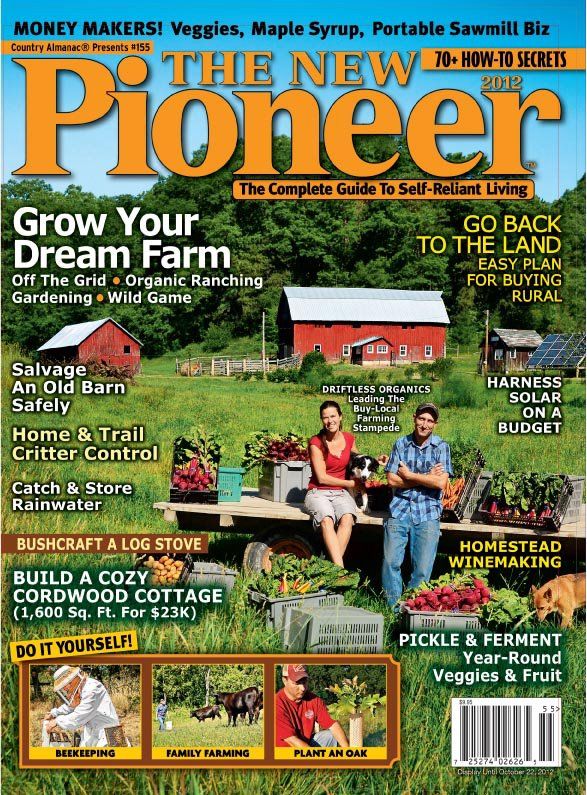 The New Pioneer is a magazine that bills itself as “The Complete Guide to Self-Reliant Living.” Featured in the magazine are “Pioneer Spotlights,” or features on real people living self-reliantly in the backcountry, as well as technical articles on anything from farming to storing energy.